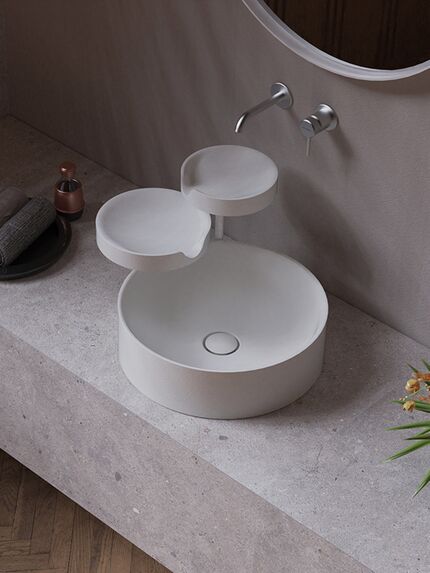 Aufsatzwaschbecken TAKI 45bestehend aus 3 Keramikbeckenund lackiertem