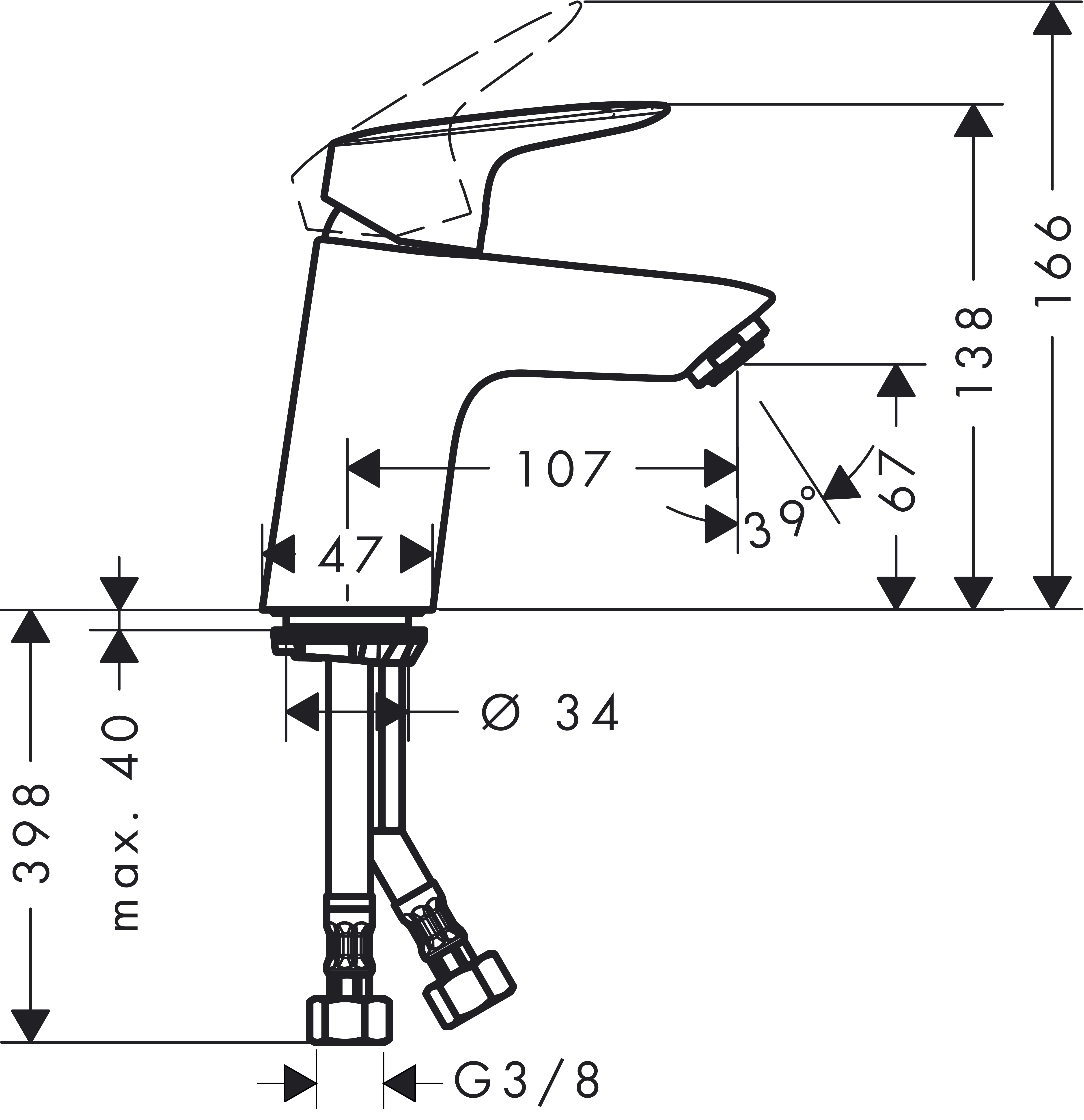 Anschlussart: G 3/8 Anschlussschläuche