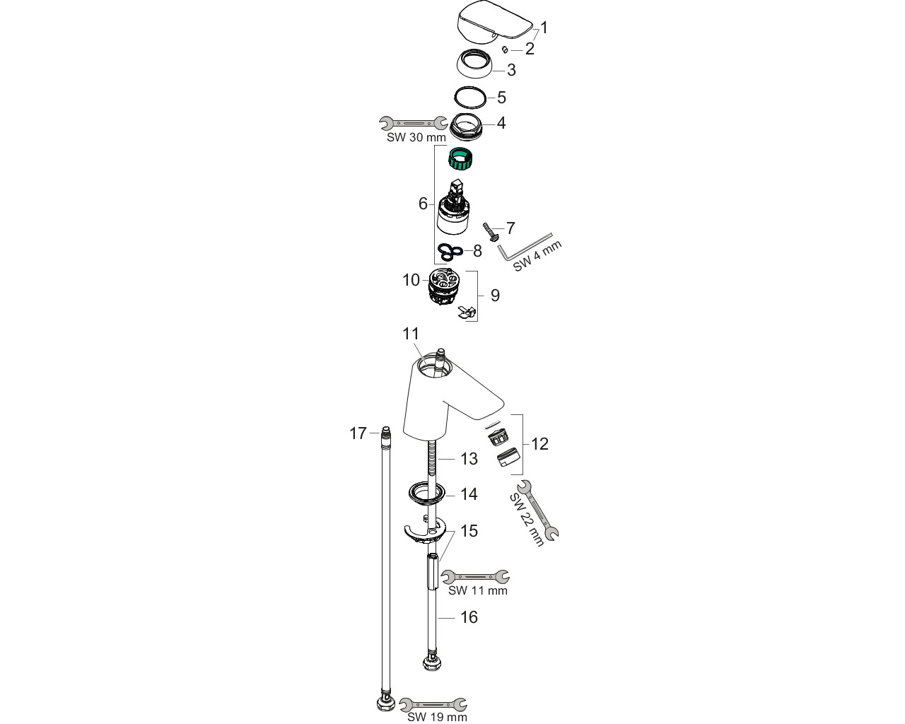 besteht aus: Einhebel-Waschtischmischer,