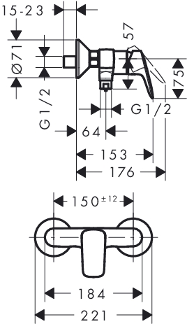 Anschlussmaß Zufuhr: 1/2 Zoll (15) Anschlussspannung: 0 V Ausführung: mechanisch Druckausgleichend: nein Frequenz Spülzyklus: 0 - 0 h Grundfarbe: Chrom KIWA-Prüfsiegel: nein Kühles Gehäuse: nein Max. Vorlauftemperatur: 0 °C Mit Kupplungen: nein Mit Temperaturbegrenzung: ja Mit Umstelleinheit: ja Mit fester Kopfdusche: nein Mittenabstand: 150 mm Oberflächenbehandlung: poliert Oberflächenschutz: verchromt Produkttyp: Duschmischarmatur Schutzart (IP): sonstige Selbstverschließend: ja Spülzeit: 0 - 0 s Tastweite: 0 - 0 mm Temperatursperre (38 °C): nein