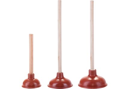 Ausgussreiniger Gummi rot, 150 mm mit Holzstiel verschraubt 46 cm