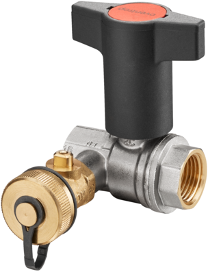 Kugelhahn mit Kunststoff Knebelgriff Optibal mit Innengewinde PN 16, mit Entleerkugelhahn DN 15, G 1/2, Messing