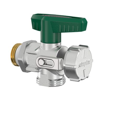 FL KFE-Kugelhahn Eck, G1/2a PN16 MS vern. m. Schlauchverschr.