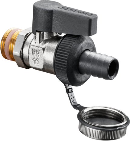 KFE-Kugelhahn Optiflex mit Außengewinde PN 16, mit Kunststoff Schlauchverschraubung, ohne Einzelverpackung DN 15, G 1/2, vernickelt