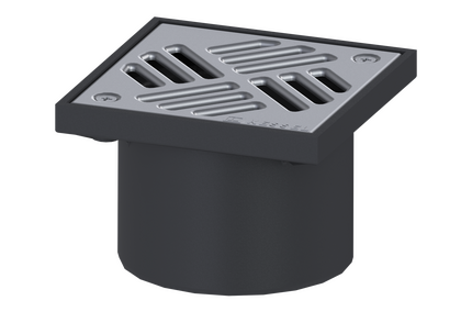 Aufsatzstück, Rahmen Material ABS, Länge 150 mm, Breite 150 mm, Abdeckungsart Schlitzrost, Verriegelung verschraubt, Rost Design, Abdeckung Edelstahl 1.4301 (V2A)