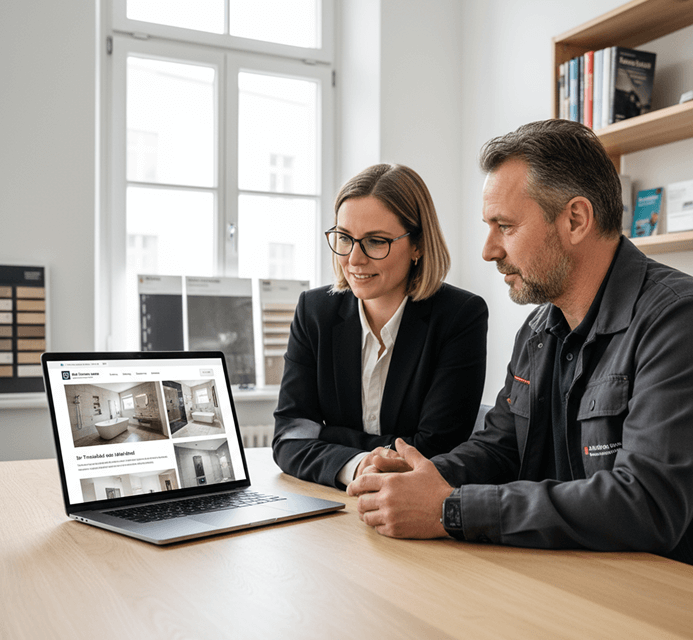 Nutze den Rechner nicht nur auf deiner Webseite. Setze ihn als Bad-Konfigurator im Beratungsgespräch in deiner Ausstellung ein oder verwende die Bad-Aufmaß-Lösung zur systematischen Erfassung der Daten direkt vor Ort beim Kunden.