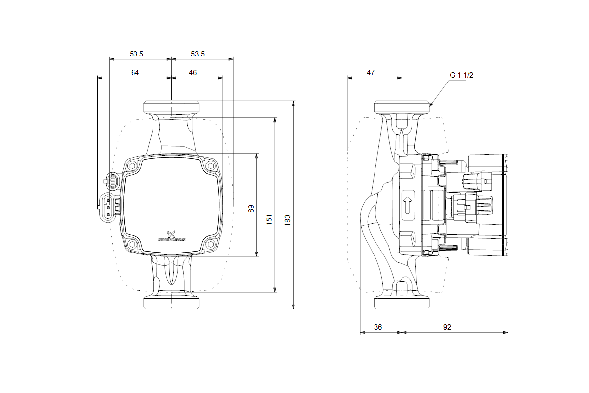 Werkstoffgüte des Pumpengehäuses: Gusseisen GG 15 (GJL-150)
